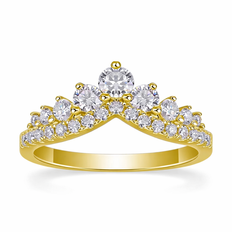 Un anello che richiama la bellezza di una corona: simbolo di luce, eleganza e femminilità. La combinazione di Moissanite di diversi tagli rende questo gioiello estremamente raffinato e perfetto per celebrare un momento speciale… o per regalarsi un lusso quotidiano.