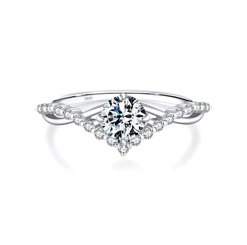 Design: Gambo intrecciato tipo infinito con metà gambo decorato da micro Moissanite a coroncina