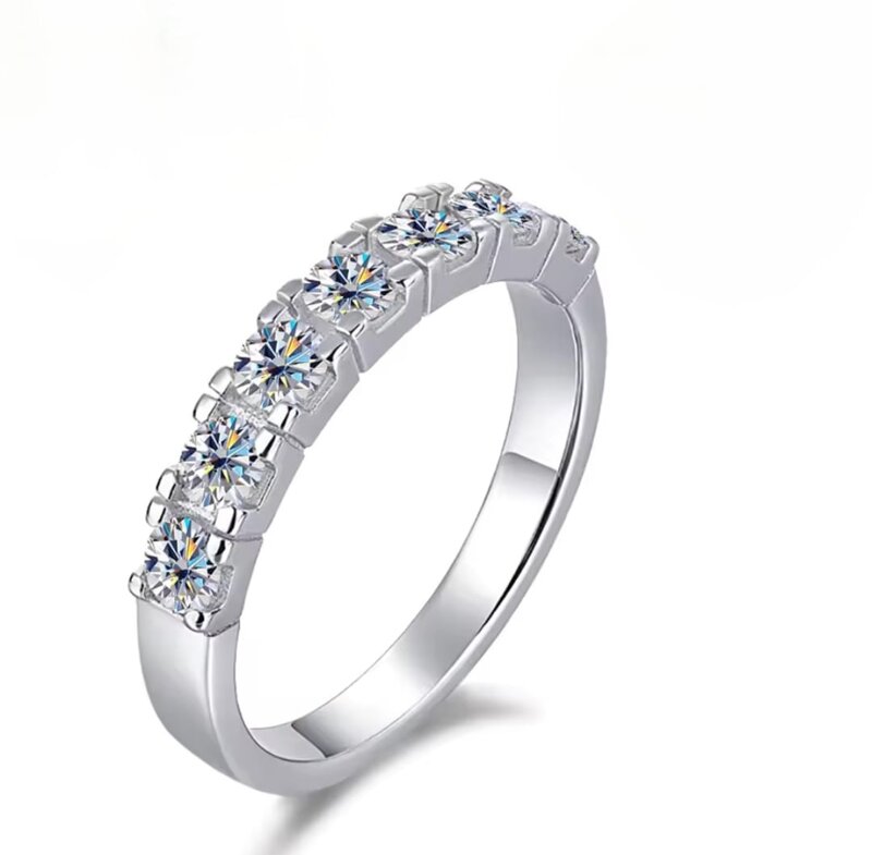 Descrizione del prodotto: Un anello elegante e senza tempo, simbolo di raffinatezza e luce infinita. Realizzato in Argento Sterling 925 con placcatura in Oro Bianco 18k, è impreziosito da una fila di Moissanite certificate GRA da 0.1 carati (3.0 mm), incastonate con precisione per esaltare al massimo brillantezza e luminosità. Perfetto da indossare ogni giorno o come dono prezioso per celebrare un’occasione speciale.Caratteristiche principali: