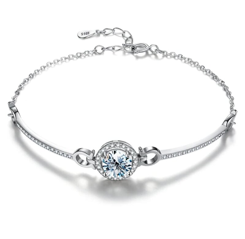 Descrizione prodotto:Un gioiello elegante e moderno, perfetto per chi desidera indossare un dettaglio prezioso che non passa inosservato.Realizzato in argento 925 con placcatura in oro bianco, è arricchito da una Moissanite centrale certificata GRA da 1 ct (6.5 mm), dal colore D, purezza VVS1 e taglio brillante, che sprigiona una luminosità pari al diamante.Il bracciale è regolabile da 17 a 21 cm, per garantire comfort e adattabilità a ogni polso.Caratteristiche Principali:- Materiale: Argento Sterling 925 placcato oro bianco