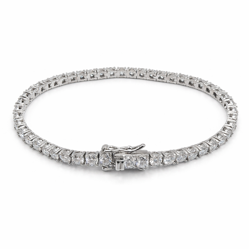 Il nostro Bracciale Tennis PLF Styling è realizzato in argento 925 placcato oro bianco, impreziosito da una sequenza continua di Moissanite certificate GRA da 0.1 ct (3.0 mm), taglio brillante, per una luce intensa e raffinata che valorizza ogni gesto.