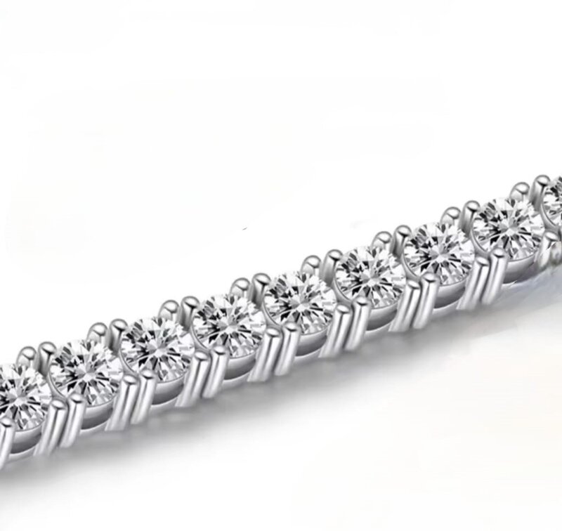 Descrizione del prodotto: Un classico senza tempo della gioielleria, simbolo di raffinatezza e luce infinita. Realizzato in Argento sterling 925 con placcatura in oro bianco 18k, questo bracciale tennis è impreziosito da una fila continua di Moissanite certificate GRA da 0.1 ct (3.0 mm), ognuna tagliata brillantemente per garantire luminosità eccezionale. La chiusura a scomparsa assicura eleganza, comfort e sicurezza, rendendolo ideale da indossare ogni giorno o per occasioni speciali. Caratteristiche principali: