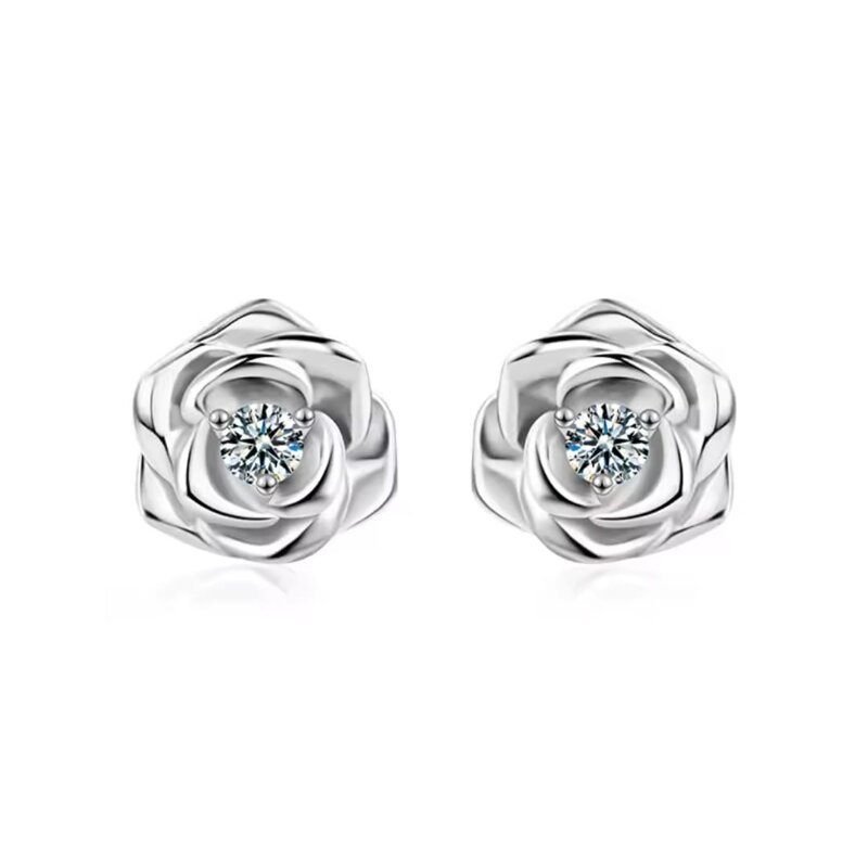 Descrizione del prodotto:Un design raffinato e romantico che unisce l’eleganza intramontabile dell’argento con la luce straordinaria della Moissanite.Questi orecchini a forma di rosa sono realizzati in argento Sterling 925 con placcatura in oro bianco 14k, impreziositi da Moissanite certificata GRA da 0.1 carati (3.0 mm), colore D e purezza VVS1.Un gioiello che cattura l’attenzione con delicatezza e stile, perfetto per un regalo speciale o per illuminare ogni outfit quotidiano.Caratteristiche- Materiale: Argento Sterling 925 placcato oro bianco 14k