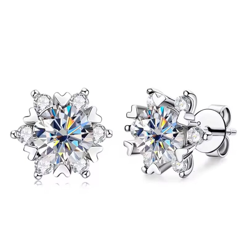 Descrizione del prodotto:Orecchini luminosi e raffinati a forma di stella, realizzati in Argento Sterling 925 con placcatura in oro bianco 18K.Ogni orecchino è impreziosito da una Moissanite certificata da 0.5 ct (5.0 mm), taglio brillante rotondo, che dona una scintillante eleganza ad ogni look.Un design simbolico e prezioso, perfetto per chi ama distinguersi con un gioiello ricco di luce e significato.Caratteristiche principali:- Materiale: Argento Sterling 925